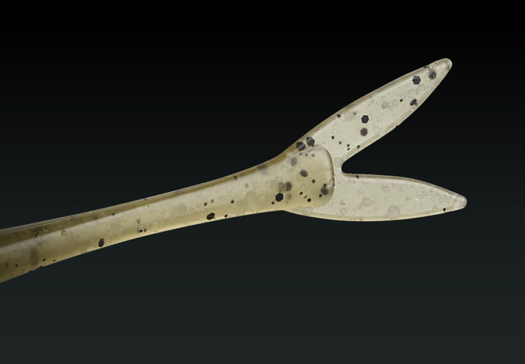バルキーなボディから急激にスリム化されたテールの先には、深く切れ込んだV字形状の薄型フラットフィン。