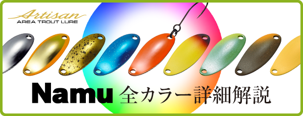 個人的にナムは特別なスプーン。大学生の頃にエリアトラウトを始め、その後千早川マス釣り場で魚を釣る技術を学ぶ中で出会ったルアー。