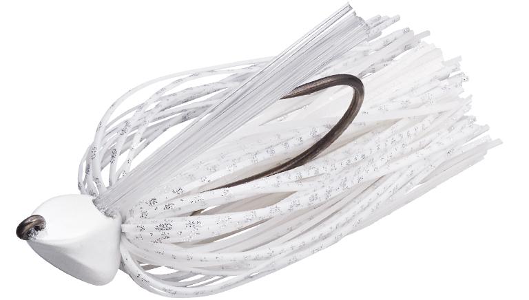 琵琶湖ビッグフィッシュ対応ヘビーワイヤーかつトレーラーの動きを殺さない長すぎないシャンクの4/0(1/4oz、3/8oz、1/2oz、5/8oz共通)フック。実釣テストから導き出されたアイポジション&角度によりすり抜けの良さと適度なスタック感を両立。さらに、フッキング時にフックの刺さる位置を安定させる効果があり、ビッグバスの上顎をしっかりと捉えます。