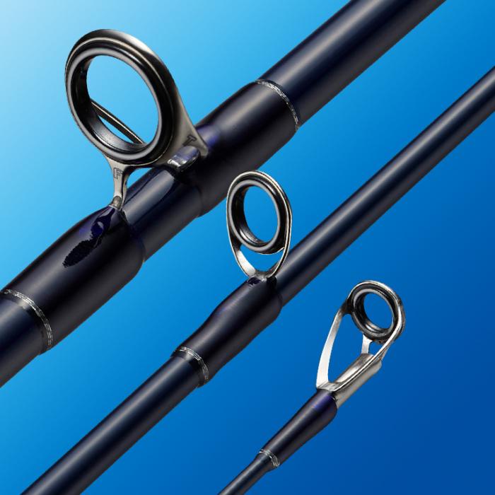- バット~ベリー部はLRVガイド、ティップ部はKTガイド、トップはMNガイドを採用。ガイドへの糸絡みを大きく低減するセッティング。フレームは高強度かつ軽量なチタン製、リングは高信頼性を誇るSiC-Sを採用(トップのみSiC-J)。