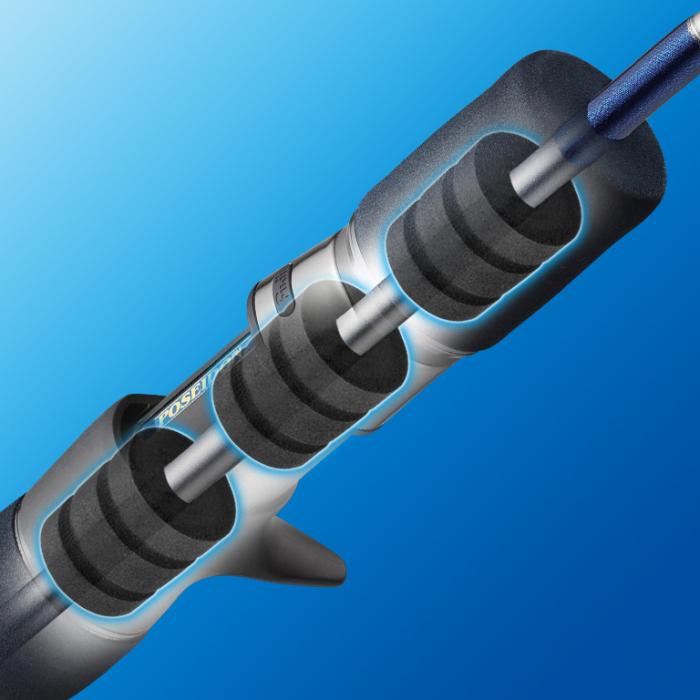 - ブランクスとリールシートの隙間を埋めるスペーサーに、エバーグリーンオリジナルアーバーを採用。超軽量かつ高硬度な材質による超高感度により、底質や潮の変化、魚の気配に至るまで「感じ取る」性能が大幅に向上。