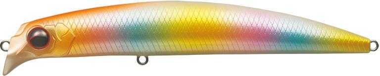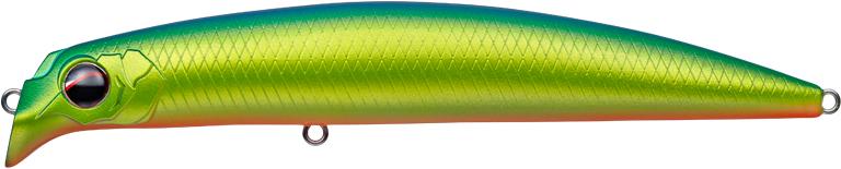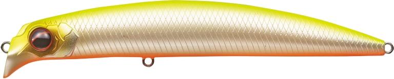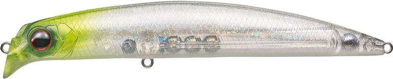 - テール後端ギリギリの位置に固定ウエイトを追加することで、飛行時の安定性がアップしオリジナル以上の飛距離を実現。また、テール下がりの浮き姿勢が超シャローレンジをキープする効果を生み出します。さらに、オリジナル ストリームデーモンと比べてテールの振り幅を抑えロール比を高めることにも貢献。下方向への柔らかい波動でナーバスなランカーを浮かせます。