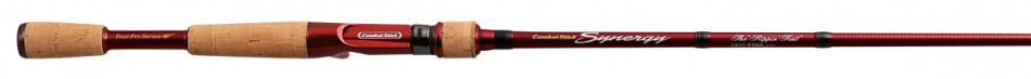- グリッピング性能や操作性を重視し、細身で軽量なブランクタッチ方式のFuji ECSリールシートとコルク&セパレートタイプグリップの組み合わせを採用。グリップエンドには清水盛三プロデュースの証、メタリックレッド&シルバーのシナジー・オリジナルエンドプレートが装着されています。