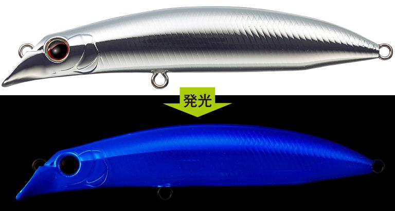 サラシに描いた理想のトレースコース、荒天を切り裂きそのスタートポイントまでカッ飛ぶ驚異の飛行性能。着水後は2つの大粒ウエイトを強力マグネットで即座に固定。素早い立ち上がりと安定した泳ぎでチャンスを逃しません。
