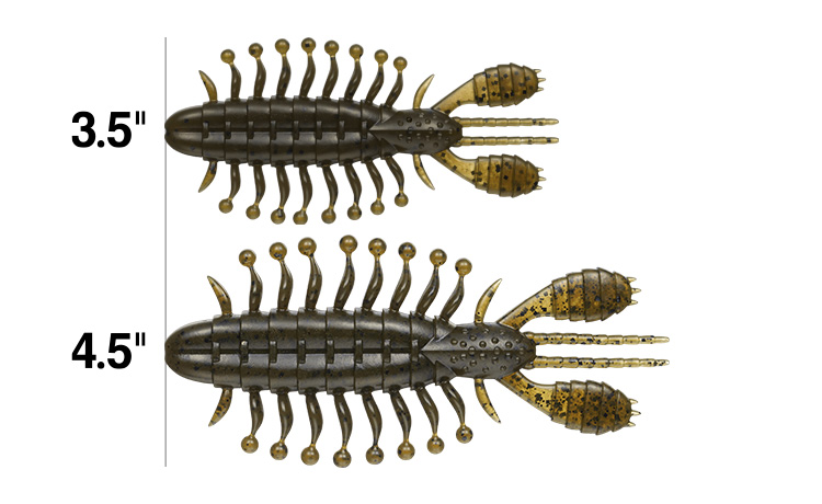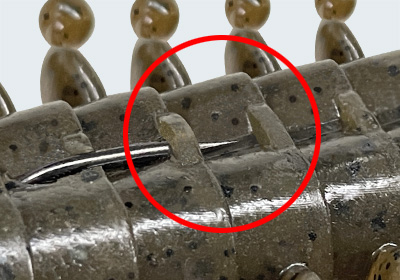 大きく水を押し、強い波動を発生する扁平ボディ&扁平アーム。ベリー部のリブで水を掴みながらボディが倒れ込み、遅れてギザ形状のアームが倒れ込む、時差を伴う水押しでバスを引き寄せます。