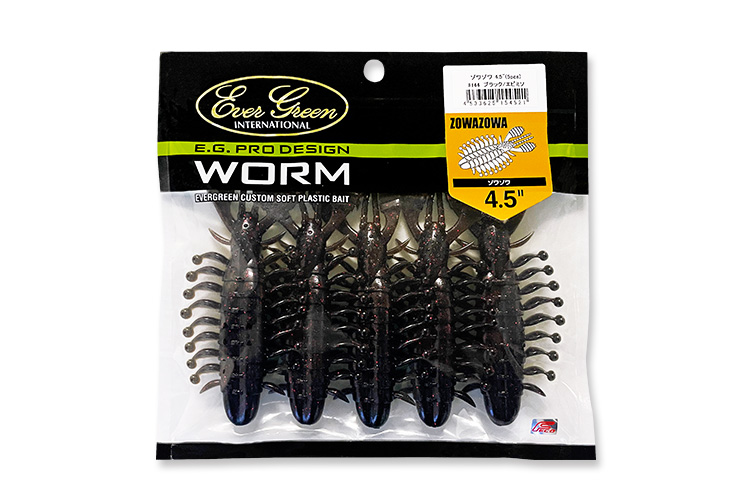 菊元俊文プロデュース。独創的なフォルムが生み出す“ゾワゾワ”とした生命感がバスの捕食本能を狂わせる。デカバス高捕獲率のフラット系ワーム「ZOWAZOWA」。