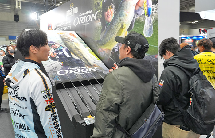 オライオンからは、数あるラインナップの中で「オライオンらしさ」を最も体感できる新機種「シルヴァ」を展示。さらに、菊元俊文が2025年のテストロケで「ロッドが何度曲がったか、わからんくらい釣ったなぁ!」という「あのロッド」を初公開。