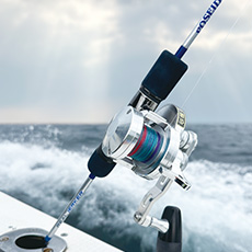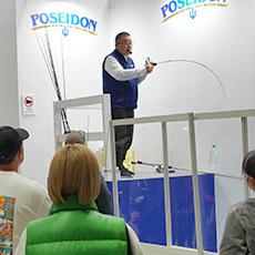 ジギング&タイラバコーナーでは、ポセイドンジギングロッドシリーズ各種と、タイラバロッドシリーズ・スパリッドマスターを展示。関連スタッフが常駐し、ロッド選びのお手伝いをいたします。ご質問や曲げ比べのご要望など、お気軽にお声がけください。