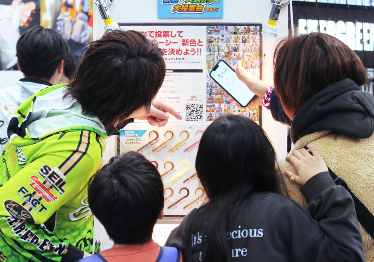 「釣りフェス2026」「フィッシングショーOSAKA2026」で開催された、大西健太のOKチャンネルとの連動企画「第2回 ルーシー新色&人気カラー大投票会」。