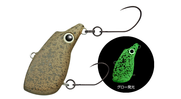 ボトム馴染みの良いナチュラルな喰わせ系カラーでありながら、グロー発光によって存在感を放つ、アピール力と喰わせ能力を兼ね備えたパイロット的カラーです。